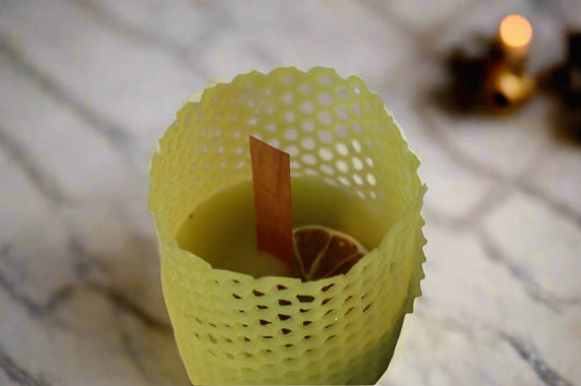 Homemade Citrus/Mint/Sage Candle with See-through Beeswax Lantern cover