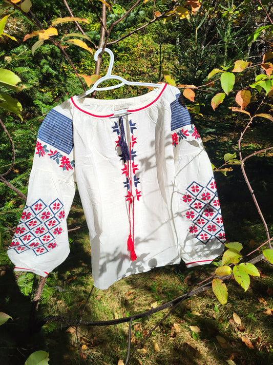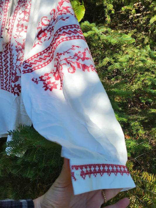 Ukrainian Style Cross Stitch Embroidered Shirt for Women